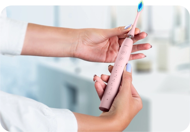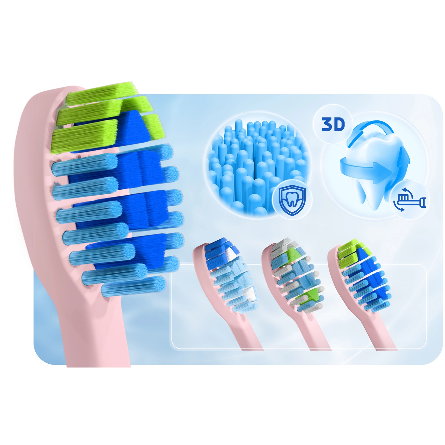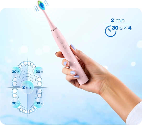 Nettoyage sonique efficace avec jusqu’à 40 000 vibrations par minute, éliminant rapidement la plaque dentaire et les taches, tandis que les poils doux prennent soin de l’émail et des gencives. La tête, avec une disposition innovante des brins, s’adapte à la forme de la dent et l’arrière sert de nettoyeur de langue pour une haleine fraîche durable.
