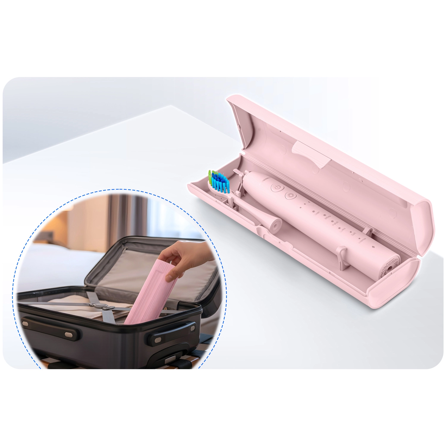 Choisissez parmi 6 modes (Clean, White, Polish, Gums, Soft, Intense) et 3 niveaux d’intensité – soit 18 combinaisons pour une personnalisation maximale. Le minuteur intelligent s’éteint automatiquement au bout de 2 minutes et rappelle de changer de quadrant toutes les 30 secondes. Grâce à une batterie de 800 mAh, à la recharge USB par induction et à la protection IPX8, la brosse est un compagnon fiable à la maison comme en déplacement.