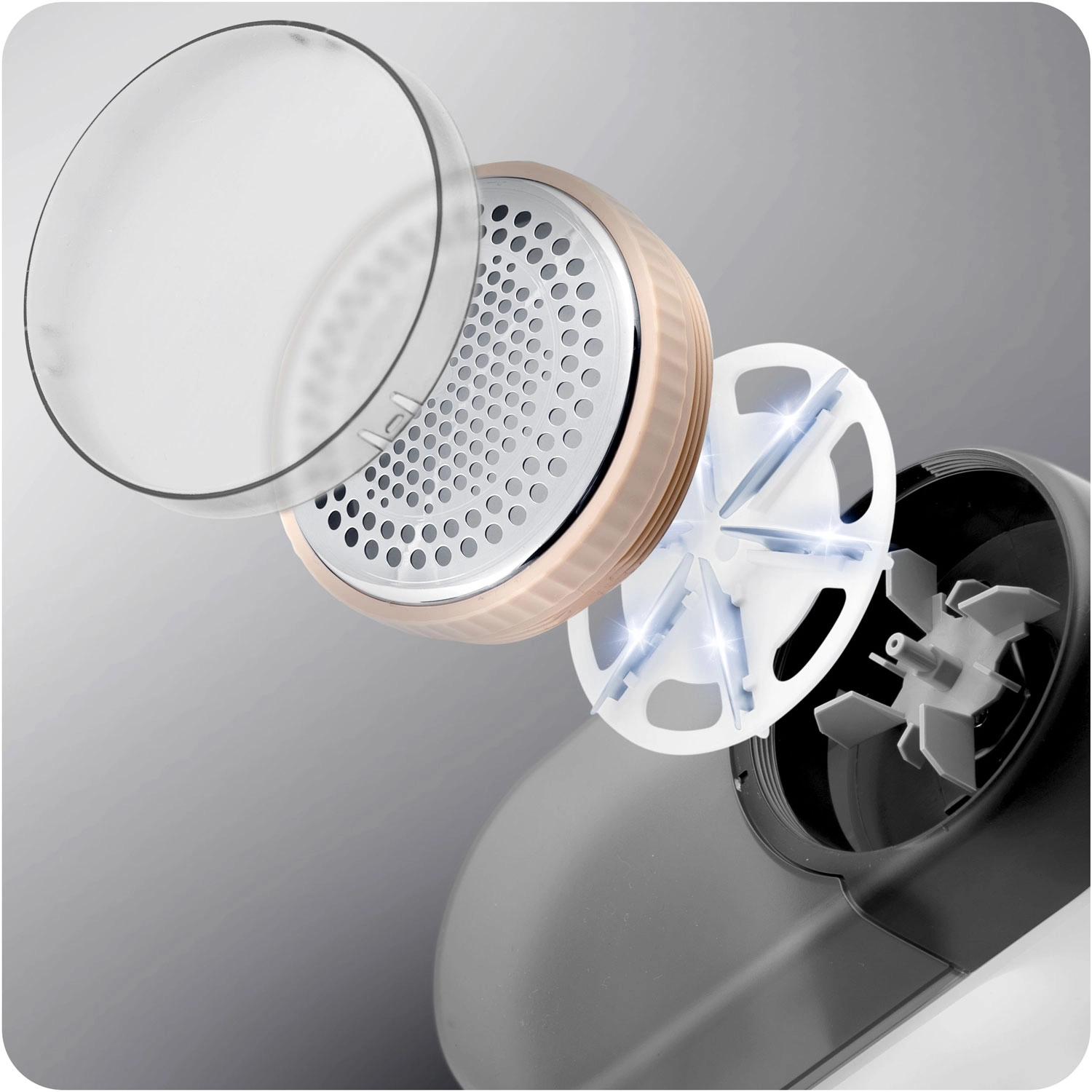 Des lames en acier inoxydable durables éliminent efficacement les peluches et bouloches, tandis que la grille de protection profilée protège les fibres contre les tirages.