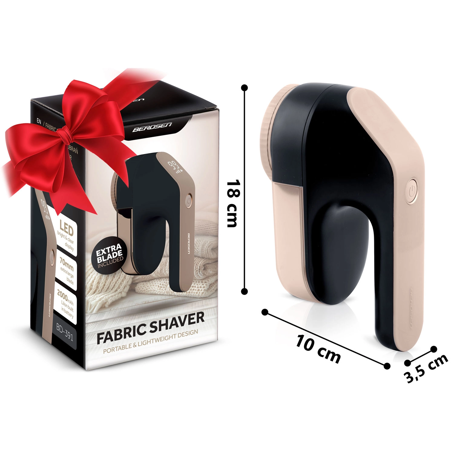 Gardez vos vêtements comme neufs avec le rasoir anti-bouloches compact BERDSEN doté d’un écran LCD. L’appareil élimine rapidement et en douceur les peluches et bouloches sur différents tissus, restaure une surface lisse et prolonge la durée de vie des vêtements et textiles. Grâce à trois niveaux de puissance, à une longue autonomie par charge et à ses lames en acier inoxydable, l’utilisation est rapide, sécurisée et efficace même sur les mailles, manteaux, tissus d’ameublement et couvertures.