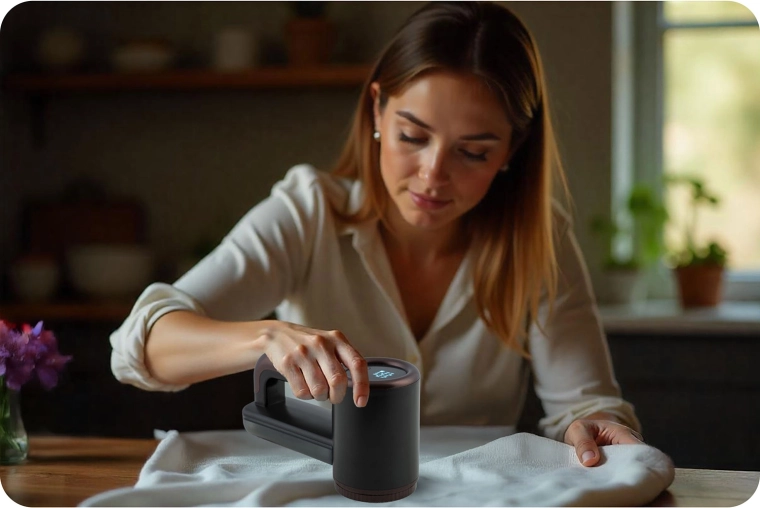 Choisissez parmi 3 modes de puissance selon le type de tissu : doux pour les matières fines et délicates, moyen pour les vêtements de tous les jours, et intensif pour les tissus épais comme la laine ou l’ameublement. La batterie 2000 mAh assure jusqu’à 3 heures de fonctionnement continu, tandis que l’écran LCD affiche en temps réel la capacité restante.