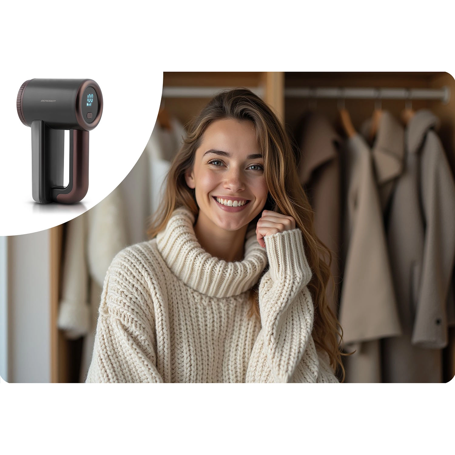 Ravivez l’apparence de vos pièces préférées – le rasoir anti-bouloches BERDSEN enlève en douceur et efficacement les bouloches des tricots, manteaux, chemises, mais aussi des plaids, tapis ou tissus d’ameublement. Sa forme ergonomique et son écran LCD clair garantissent une utilisation confortable à la maison comme en voyage.