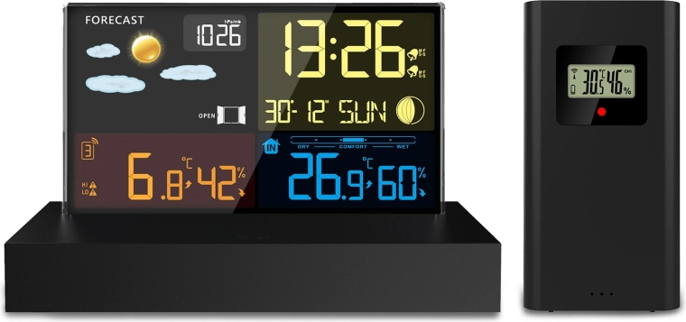 Station météorologique sans fil avec écran LCD couleur BD-912, noir