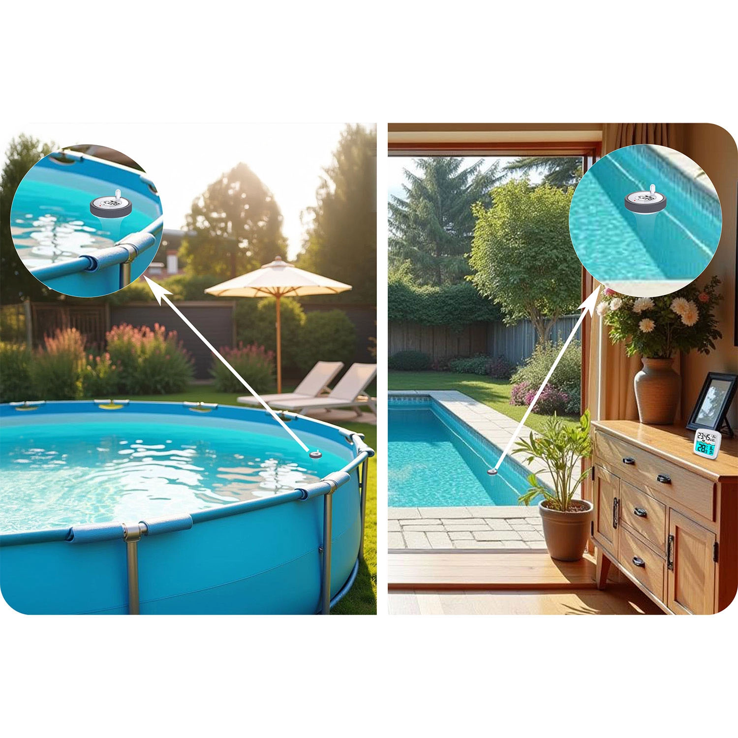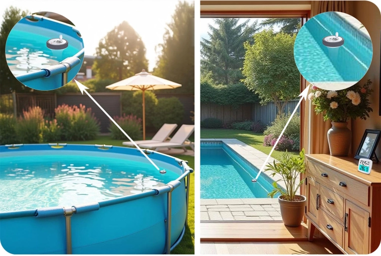 La sonde flottante suit avec précision la température de l’eau et envoie les données à l’unité intérieure – idéale pour les piscines domestiques et les spas.