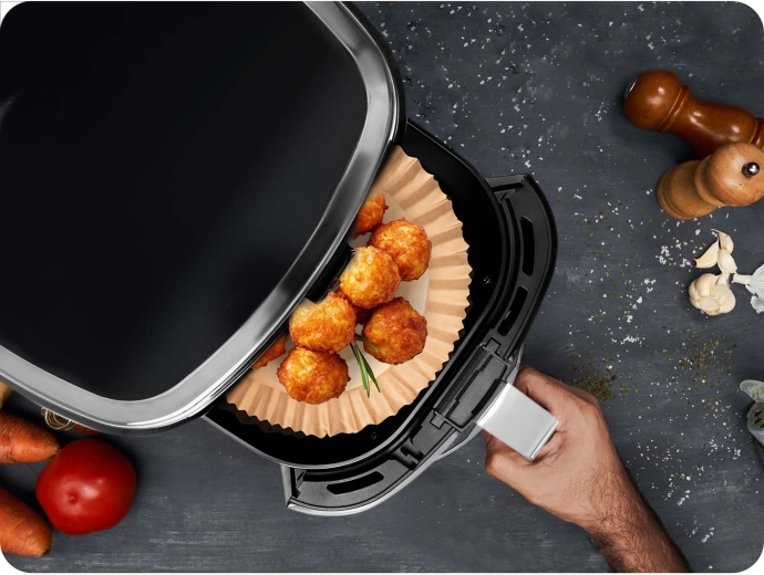 Simplifiez la préparation des plats dans votre friteuse à air avec les inserts jetables en papier cuisson Berdsen. Ils minimisent les aliments brûlés et la graisse, de sorte qu’après la cuisson, il suffit de jeter l’insert et le panier reste nettement plus propre. Idéal pour un usage quotidien et une cuisson plus saine sans huile superflue.