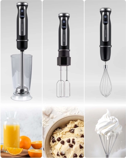 Découvrez la puissance et la précision en cuisine avec le mixeur plongeant BERDSEN. Son moteur robuste de 1500 W et le mode TURBO garantissent des résultats éclairs même avec des ingrédients durs, tandis que la lame en titane GOLD offre une longue durée de vie, une excellente résistance à la corrosion et un nettoyage facile. Grâce à 25 vitesses à réglage progressif, vous gardez un contrôle total sur la consistance de vos soupes, sauces, smoothies et pâtes.