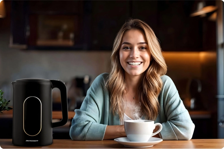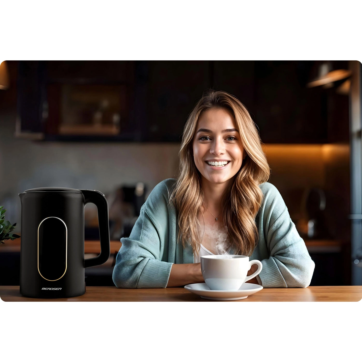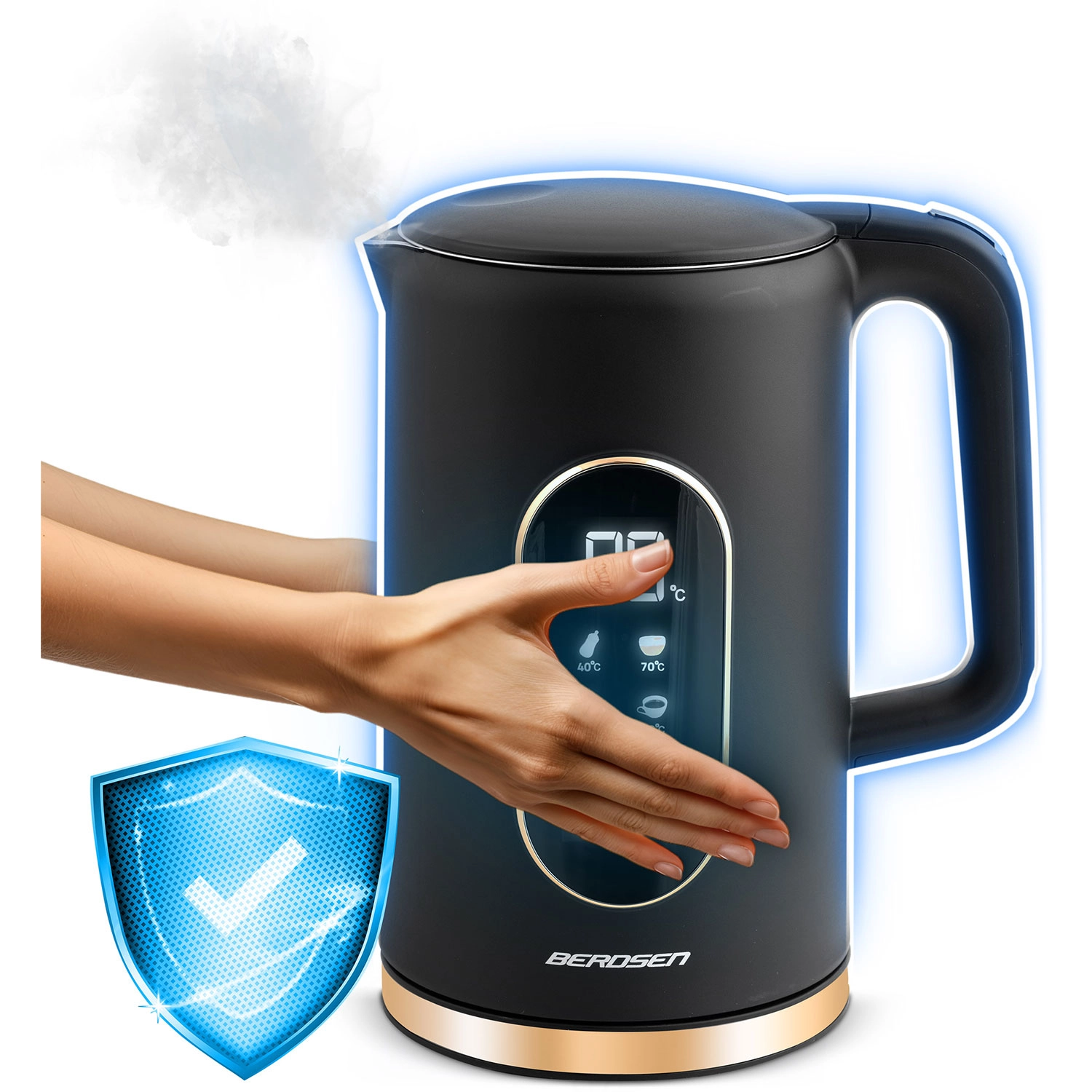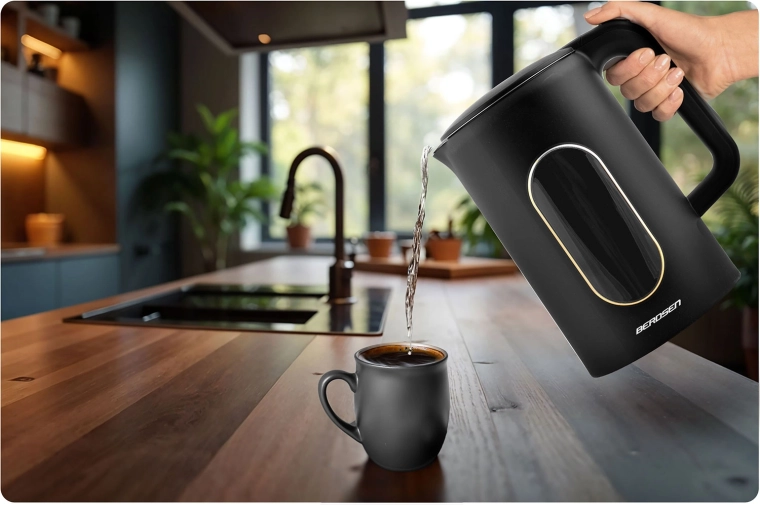La construction double paroi CoolTouch™ (inox + plastique de qualité) garantit sécurité et confort en restant froide à l’extérieur, tandis que l’arrêt automatique avec protection contre la chauffe à sec assure une utilisation fiable. L’intérieur en inox SUS 304 est durable, hygiénique et sans BPA – pour une eau plus pure et une plus longue durée de vie de l’appareil.