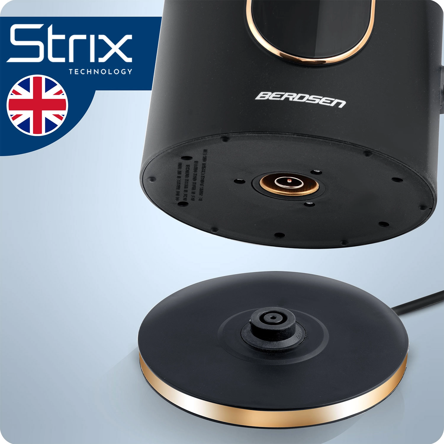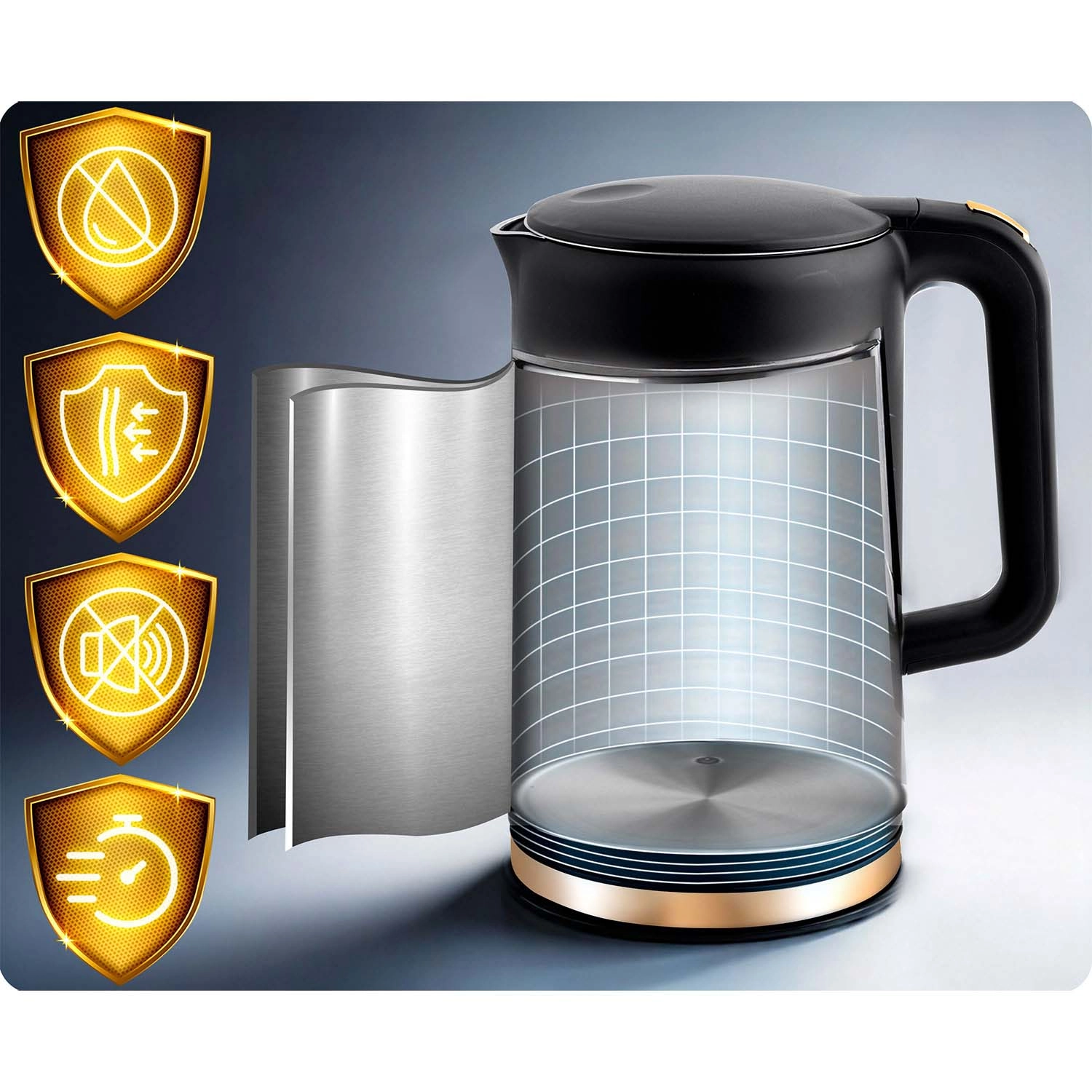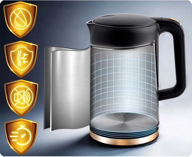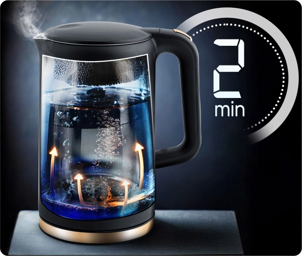 Le système de chauffage puissant de 1850–2200 W assure une ébullition rapide et silencieuse en 2–5 minutes. Le bec verseur pratique avec anti-goutte, la base rotative 360° et l’ouverture du couvercle par bouton rendent la préparation quotidienne des boissons agréable.