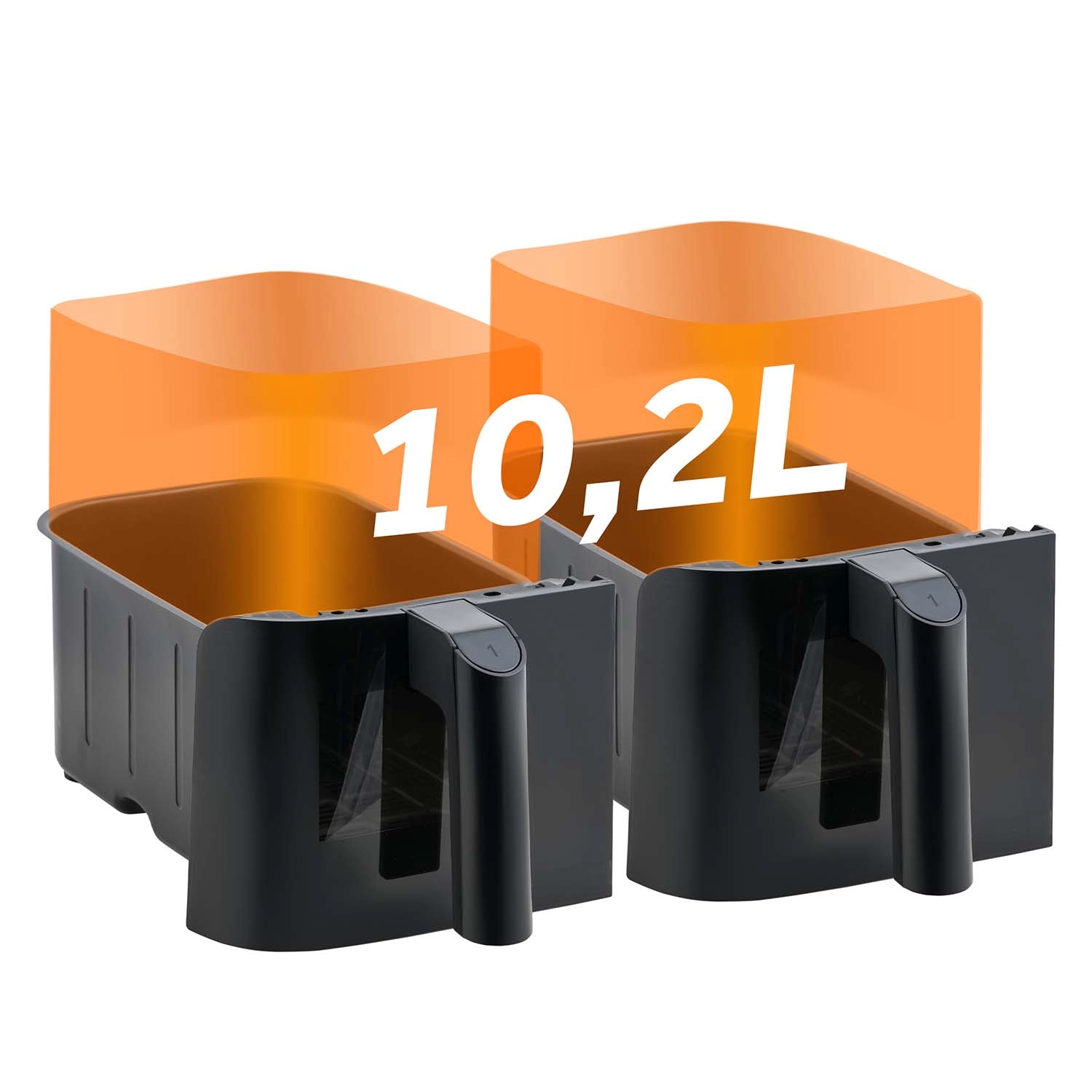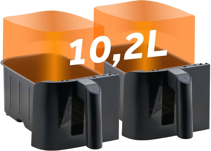 Préparez le plat principal et l’accompagnement en même temps. Les deux paniers de 5,1 l avec fenêtres et éclairage LED vous offrent un contrôle total sans ouvrir les tiroirs – plus rapide, plus propre, plus efficace.