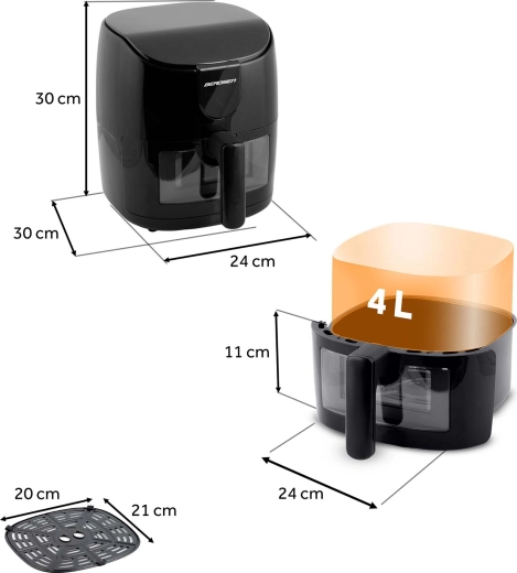 La friteuse à air BERDSEN 4 l offre une cuisson plus saine avec un minimum d’huile, une préparation rapide et une utilisation simple. Grâce à 8 programmes automatiques, au panneau tactile et au hublot avec lumière LED, vous gardez le contrôle de la cuisson sans ouvrir le panier. Avec ses 1500 W, le réglage de la température de 40 à 200 °C et le rappel pour retourner/agirer les aliments, vous obtenez des résultats croustillants sans graisse superflue.