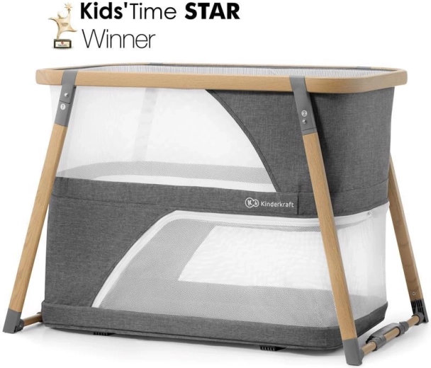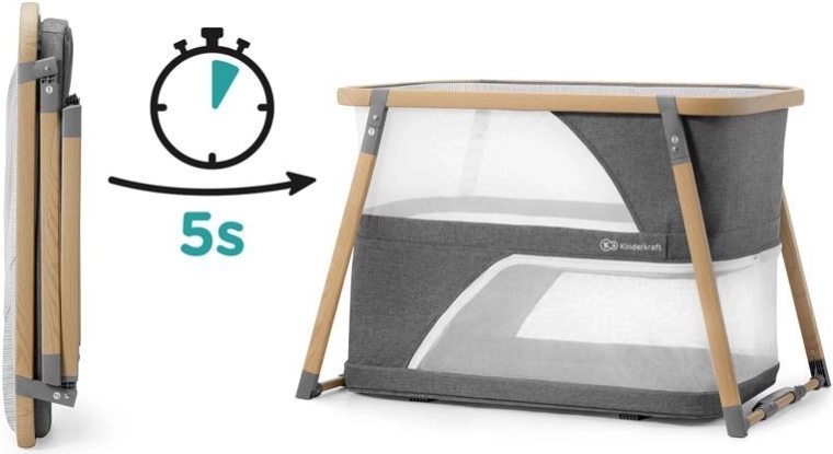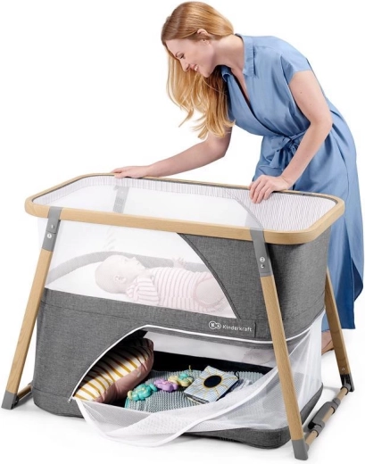 Le lit multifonction 4-en-1 KIDERKRAFT Sofi en élégant coloris gris combine lit bébé, lit de voyage, parc et balancelle. Il offre un pliage rapide en 5 secondes, un cadre en aluminium léger avec décor bois, des parois latérales en maille respirante et un matelas en mousse de qualité pour un sommeil et un jeu sûrs et confortables à la maison comme en déplacement.
