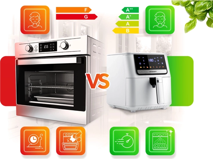 Un seul appareil remplace la friteuse traditionnelle, le four, le gril, le grille-pain/toasteur, le déshydrateur et le réchauffe-plats. Démarrage différé, rappel de secouage/retournement des aliments, protection contre la surchauffe et arrêt automatique pour un fonctionnement en toute sécurité.
