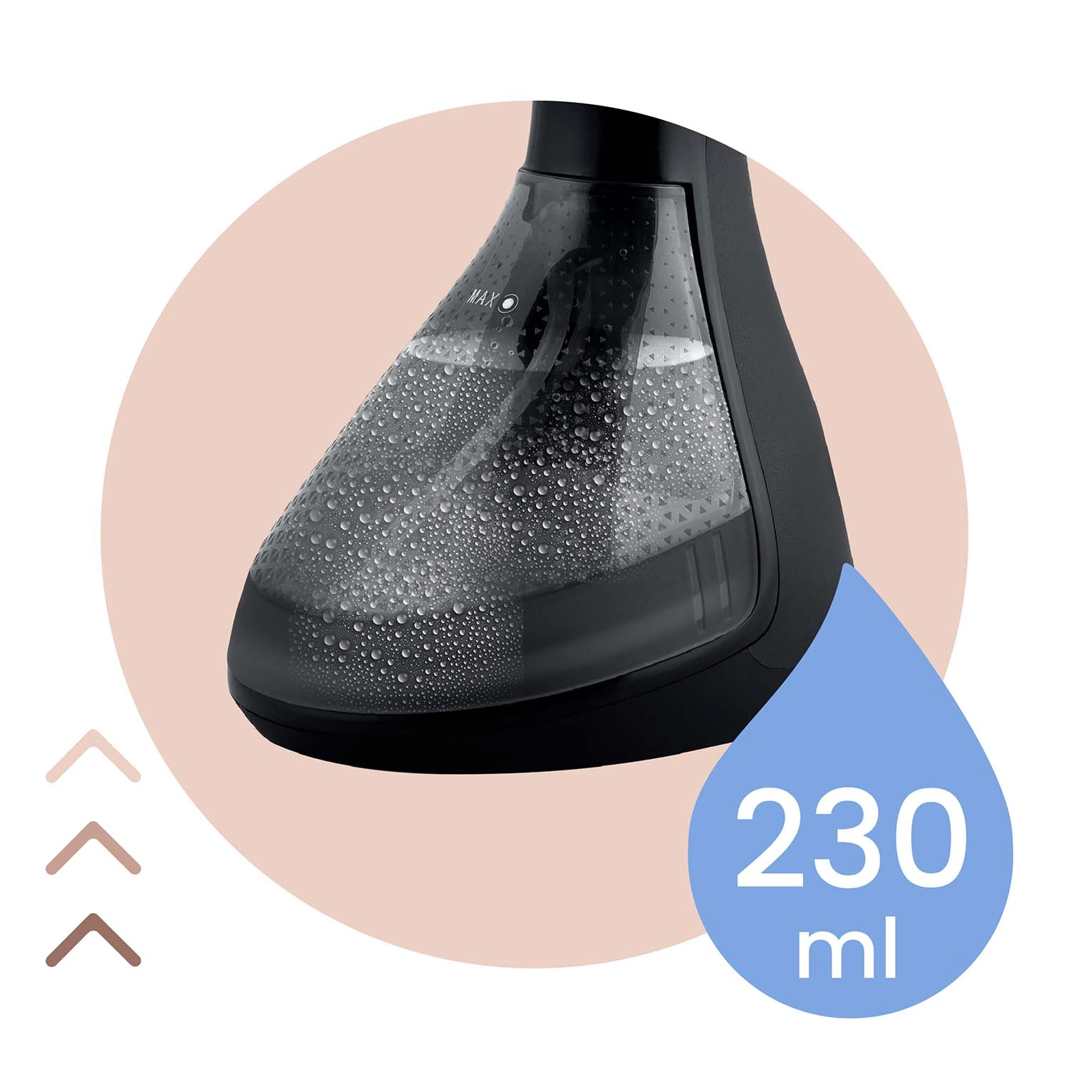 - Défroisseur vapeur, brosse, réservoir 230 ml, entonnoir de remplissage