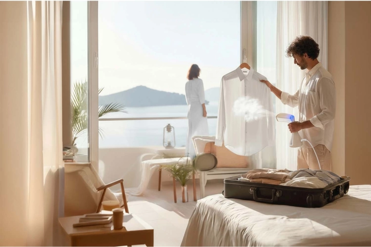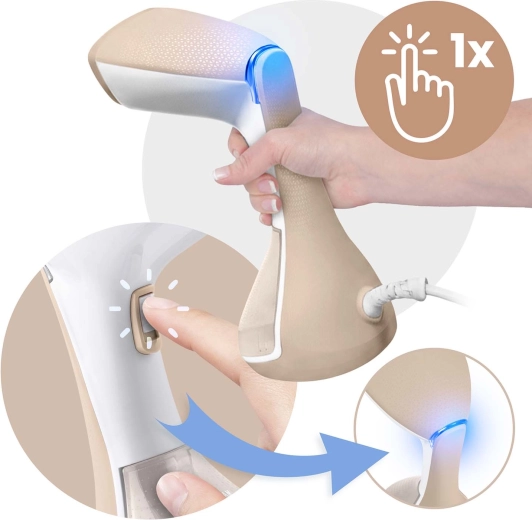 Le jet de vapeur puissant lisse rapidement même les plis tenaces sur les chemises, pantalons et robes – directement sur cintre, sans table à repasser.