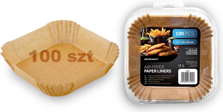 Caissettes en papier pour friteuse à air 23 × 23 cm – 100 pcs Berdsen