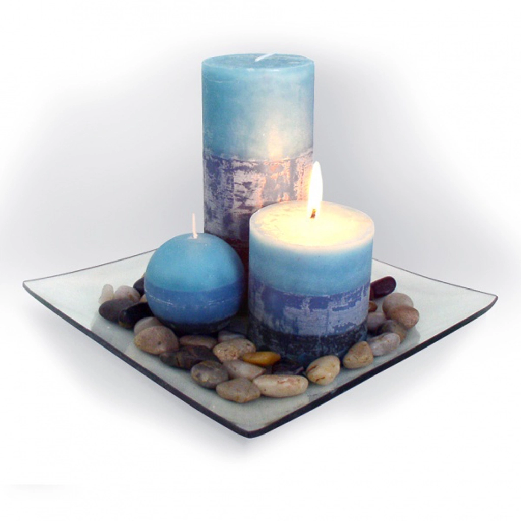 - Décoration prête à l’emploi – bougies, plateau et galets en un seul ensemble