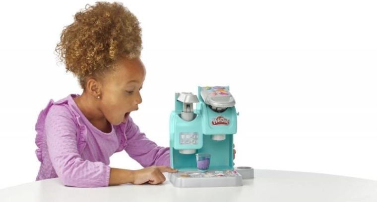 Transformez le coin jeux en café avec Play-Doh Café Coloré ! L’appareil turquoise à levier « extrude » la boisson dans le gobelet, vous la décorez d’une « crème fouettée » aérienne à la station de service et vous préparez de délicieuses sucreries grâce aux moules. Exposez ensuite le tout sur le présentoir transparent comme dans une véritable vitrine.
