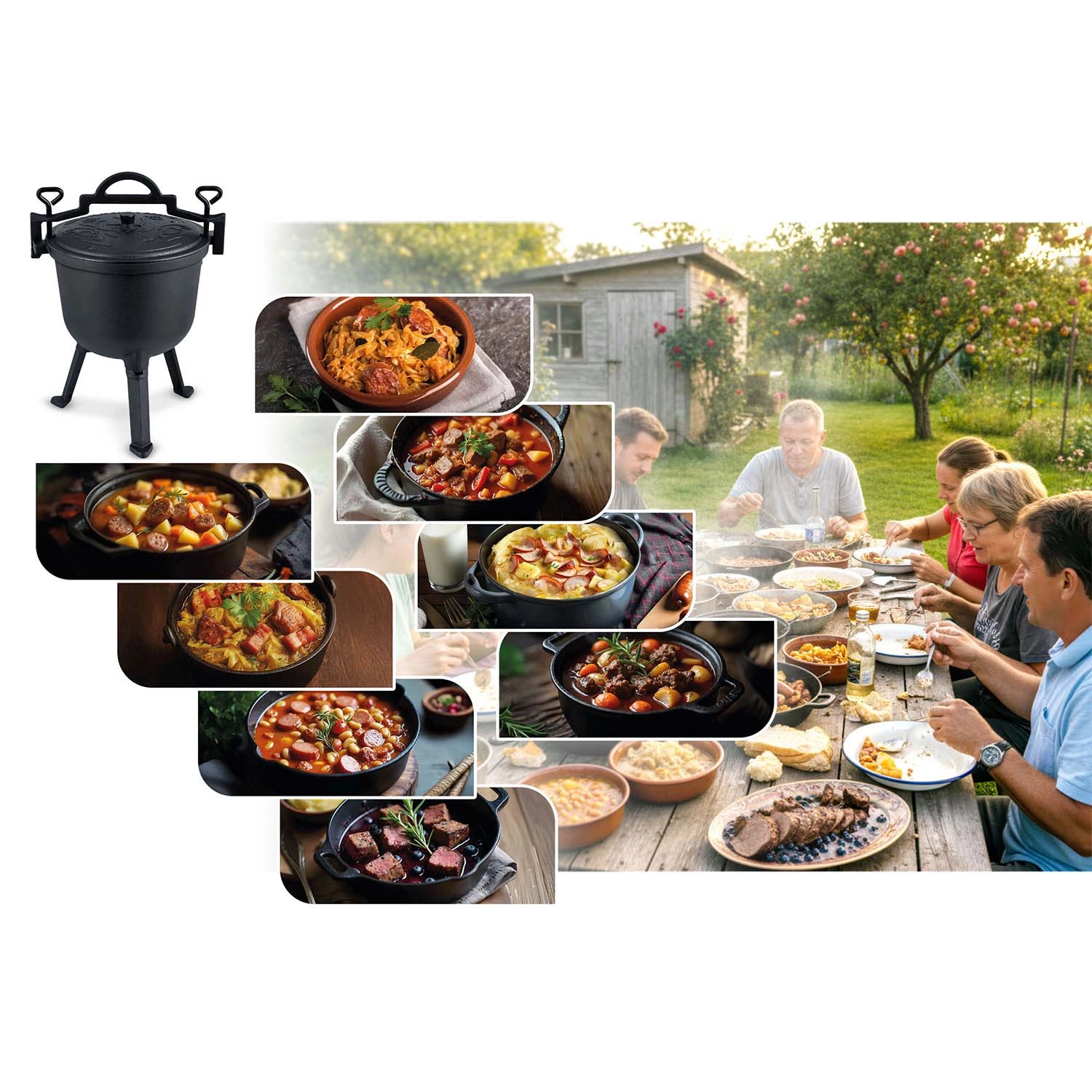 Un ensemble de recettes pratiques est inclus – du goulasch et des brochettes au chaudron jusqu’aux soupes hivernales nourrissantes. Lancez-vous dès maintenant et profitez de la cuisine conviviale au coin du feu.