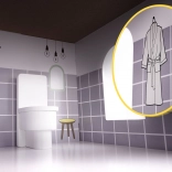 Une salle de bain minimaliste avec des éléments modernes comme une pomme de douche et des toilettes, qui confère un aspect moderne à l'intérieur.