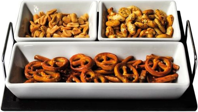 Ce set de service polyvalent s’intègre à tout intérieur et met en valeur la présentation de vos encas, que vous receviez des amis ou souhaitiez un service élégant au quotidien.