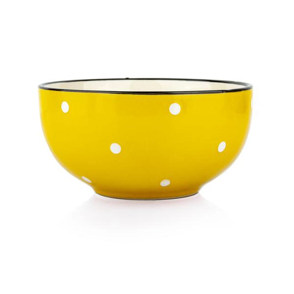 Un bol en céramique stylé de couleur jaune vif avec des pois blancs apporte une touche ludique à votre table. Idéal pour le petit-déjeuner, les soupes ou les desserts grâce à une contenance de 490 ml et un diamètre pratique de 13 cm. La céramique résistante garantit une longue durée de vie et un entretien facile.