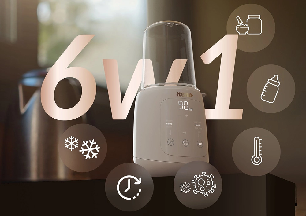Simplifiez l’alimentation de votre bébé avec l’appareil multifonction Neno Tocco 6‑en‑1. Ce compagnon compact combine le chauffage du lait, le réchauffage des petits pots, la décongélation, la stérilisation à la vapeur, le chauffage rapide et le maintien au chaud. Grâce au système intelligent Smart Pro, il choisit automatiquement la durée et la température idéales selon le volume, la température initiale et le matériau du récipient. Un panneau tactile intuitif, une lampe LED intégrée pour une utilisation nocturne et un design élégant et minimaliste séduiront tous les parents occupés.