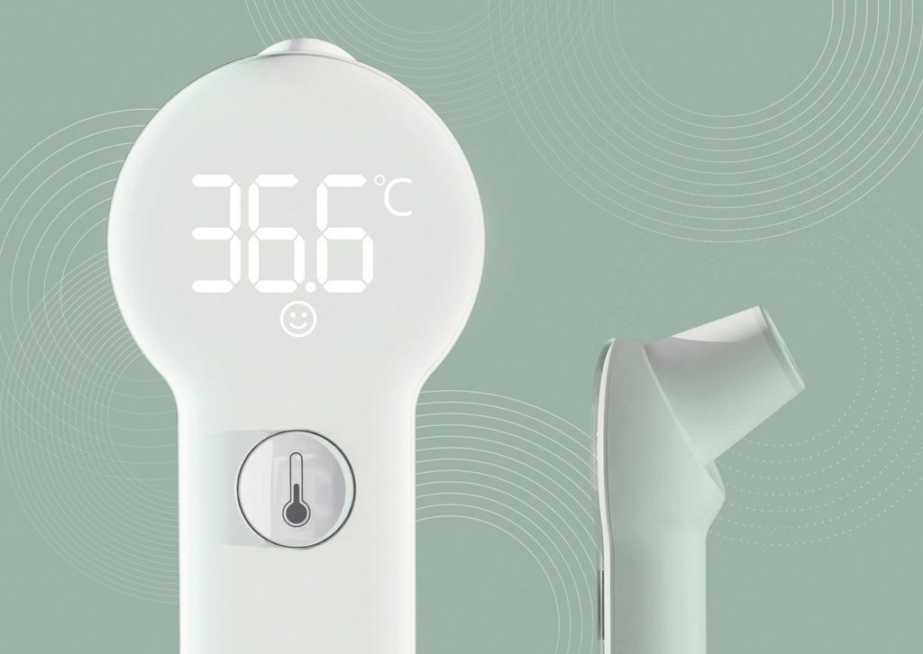 Un système intelligent bascule automatiquement les modes : en retirant le capuchon magnétique, vous passez du mesurage au front au mode de mesure auriculaire. Le thermomètre signale en outre la fin de mesure par un bip sonore et avertit en cas de fièvre. Son design ergonomique, léger et résistant tient bien en main et trouve sa place dans toute trousse à pharmacie.
