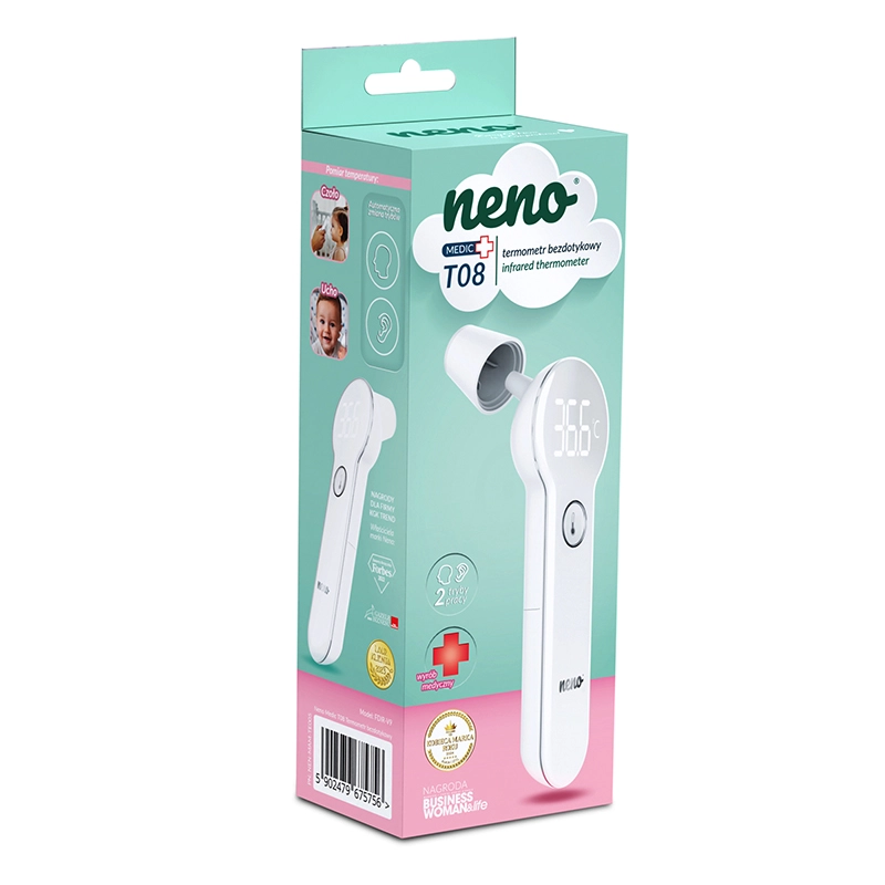 Le NENO Medic T08 est un thermomètre sans contact moderne conçu pour une mesure sûre et hygiénique sans réveiller les enfants endormis. Il utilise une technologie infrarouge précise, qui fournit un résultat en 1 seconde avec une précision de ±0,2 °C. Grâce à son grand écran LED rétroéclairé, vous lisez facilement la valeur même la nuit.