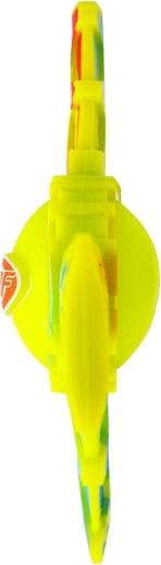 Les couleurs contrastées facilitent le suivi du jouet dans les airs. La surface en TPR rainurée assure une tenue ferme au lancer comme à la réception.
