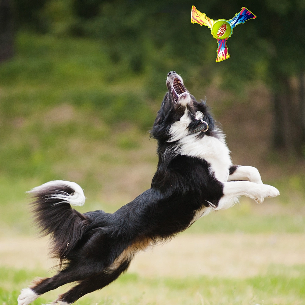 La construction à trois branches avec poignée centrale aide le jouet à glisser de façon stable dans l’air, offrant à votre chien plus de temps pour l’attraper.