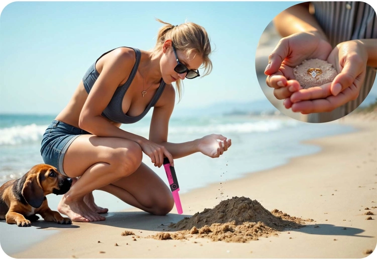 Scannez tout autour et localisez précisément la trouvaille en quelques secondes. Idéal pour les pièces, bijoux et petits objets métalliques.