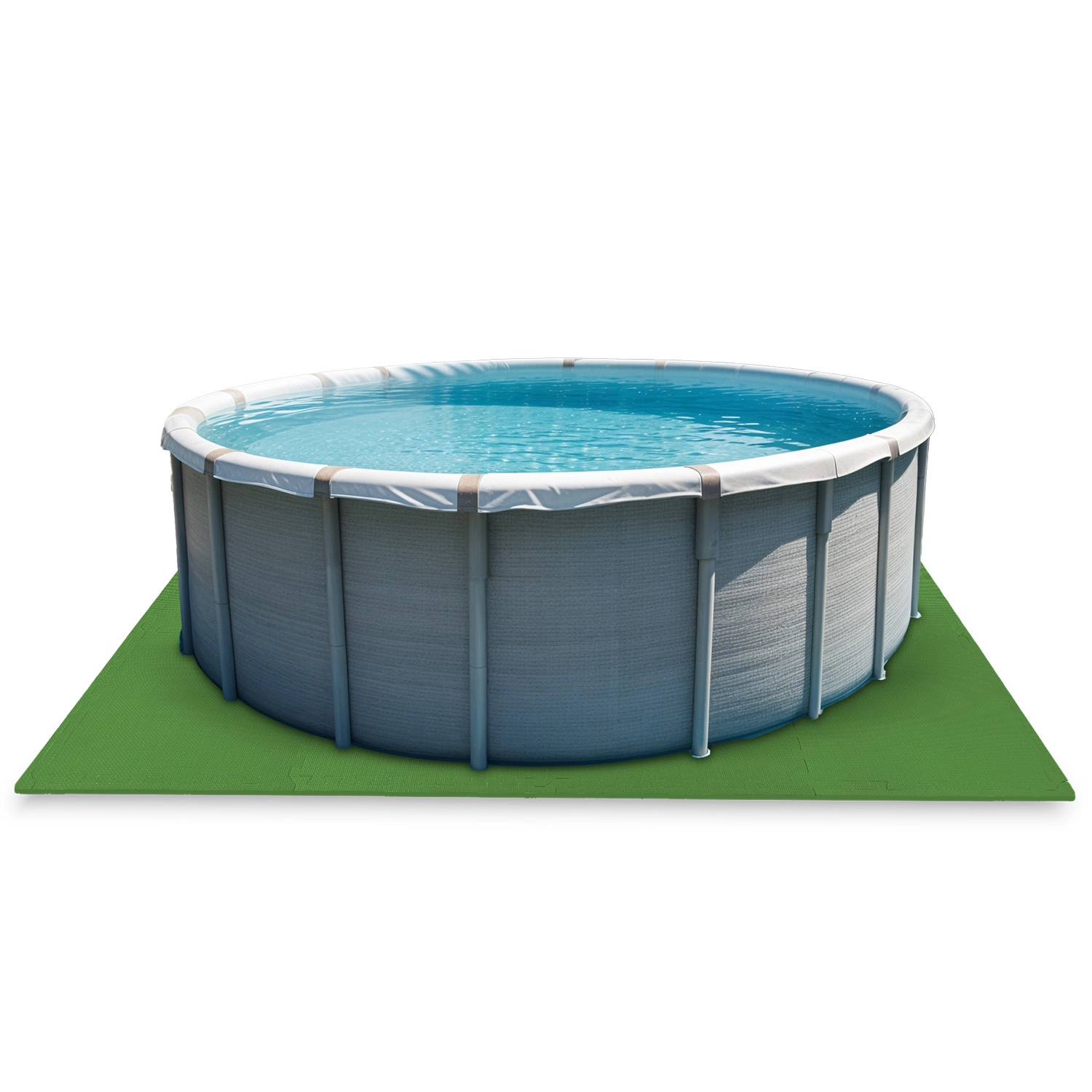 Chaque dalle mesure 50 × 50 × 1 cm et elles couvrent ensemble une surface de 1,9 m². Le tapis constitue une base propre et stable sous la piscine et une solution de protection et d’amortissement sur les surfaces dures, tout en réduisant le bruit.