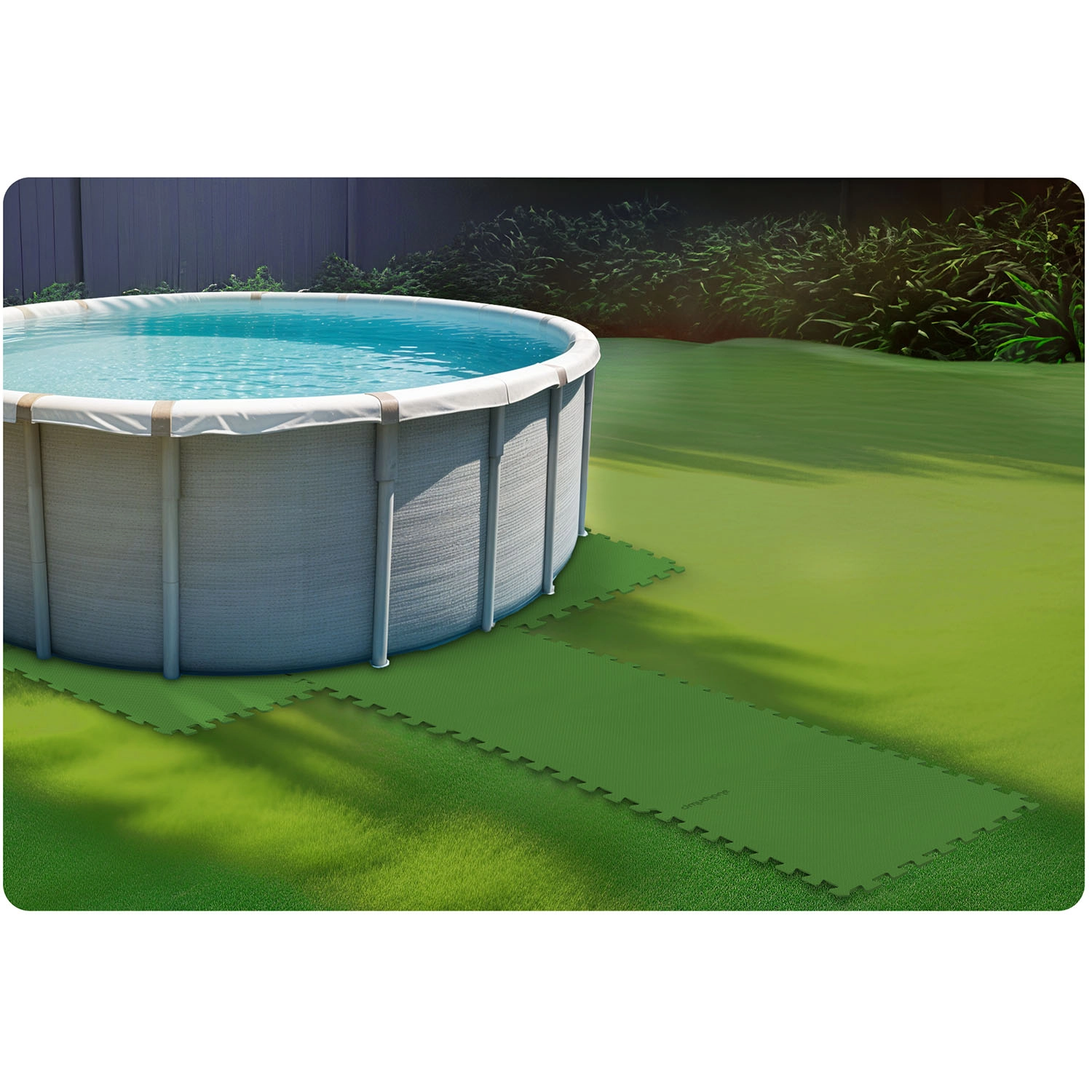 Le tapis puzzle vert pratique est idéal comme protection sous les piscines hors-sol, mais aussi sous les trampolines, sur les terrasses, balcons ou dans les zones pour enfants. Grâce aux bords verrouillables, vous assemblez facilement les dalles en différentes formes et dimensions. Le matériau résistant n’absorbe pas l’eau, se nettoie facilement et aide à maintenir les abords de la piscine propres et sûrs.
