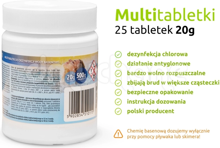Tablettes de chlore multifonctions pour piscine 20 g, 25 pcs (0,5 kg)