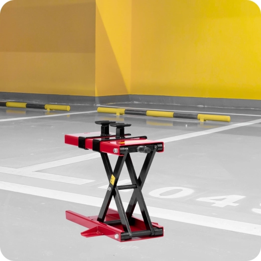Vous cherchez un moyen solide et sécurisé pour lever votre moto lors de l’entretien ? Ce cric à ciseaux MP1 noir‑rouge est fabriqué en acier de haute qualité et permet un réglage en douceur de la hauteur jusqu’à 42,5 cm. Grâce aux patins en caoutchouc et à sa large base, il offre une excellente stabilité, tandis que les orifices dans la base facilitent l’ancrage ferme au sol.