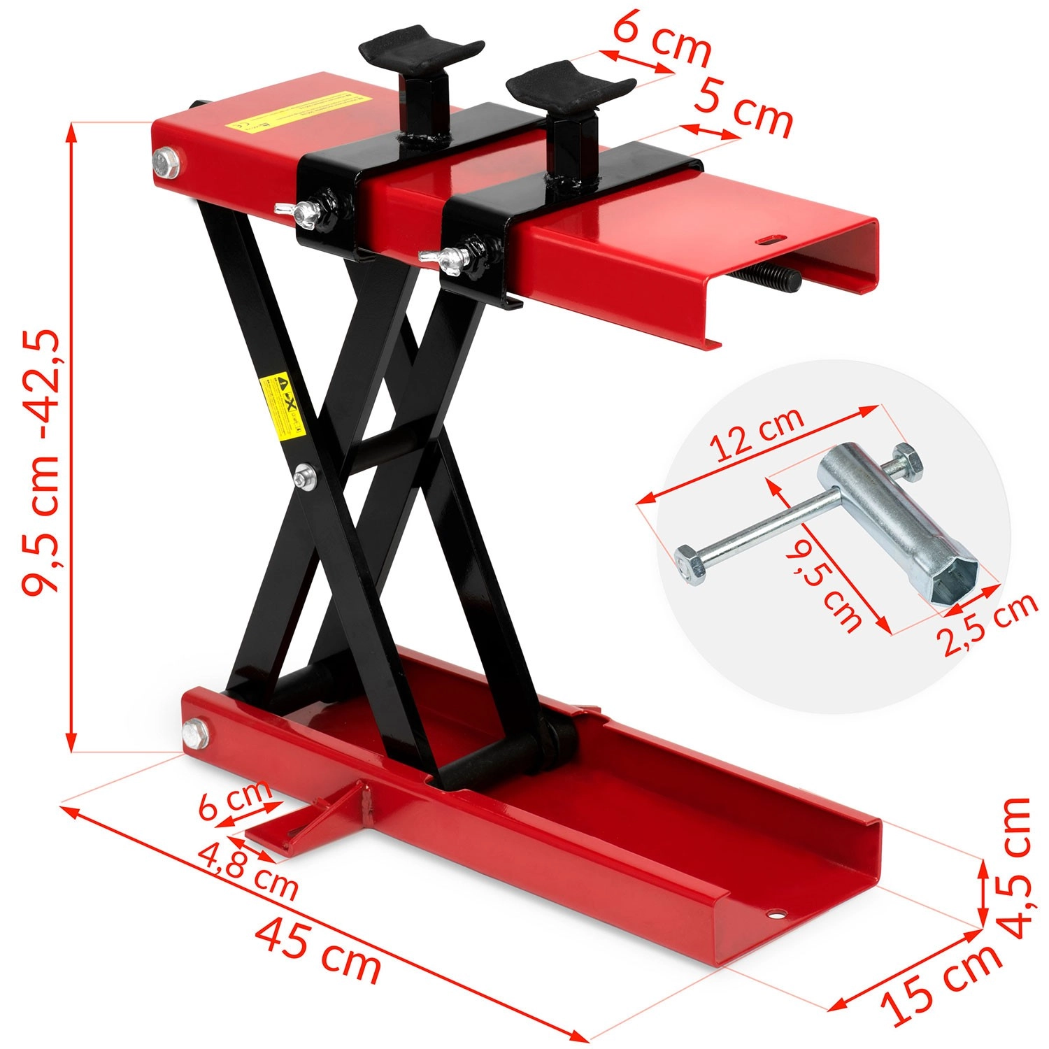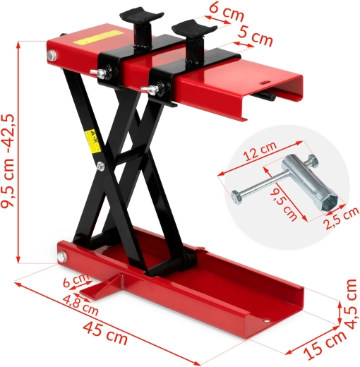Cric à ciseaux pour moto MP1 noir‑rouge 500 kg