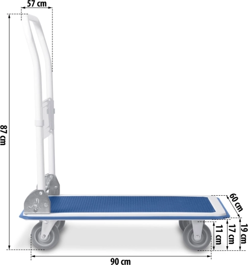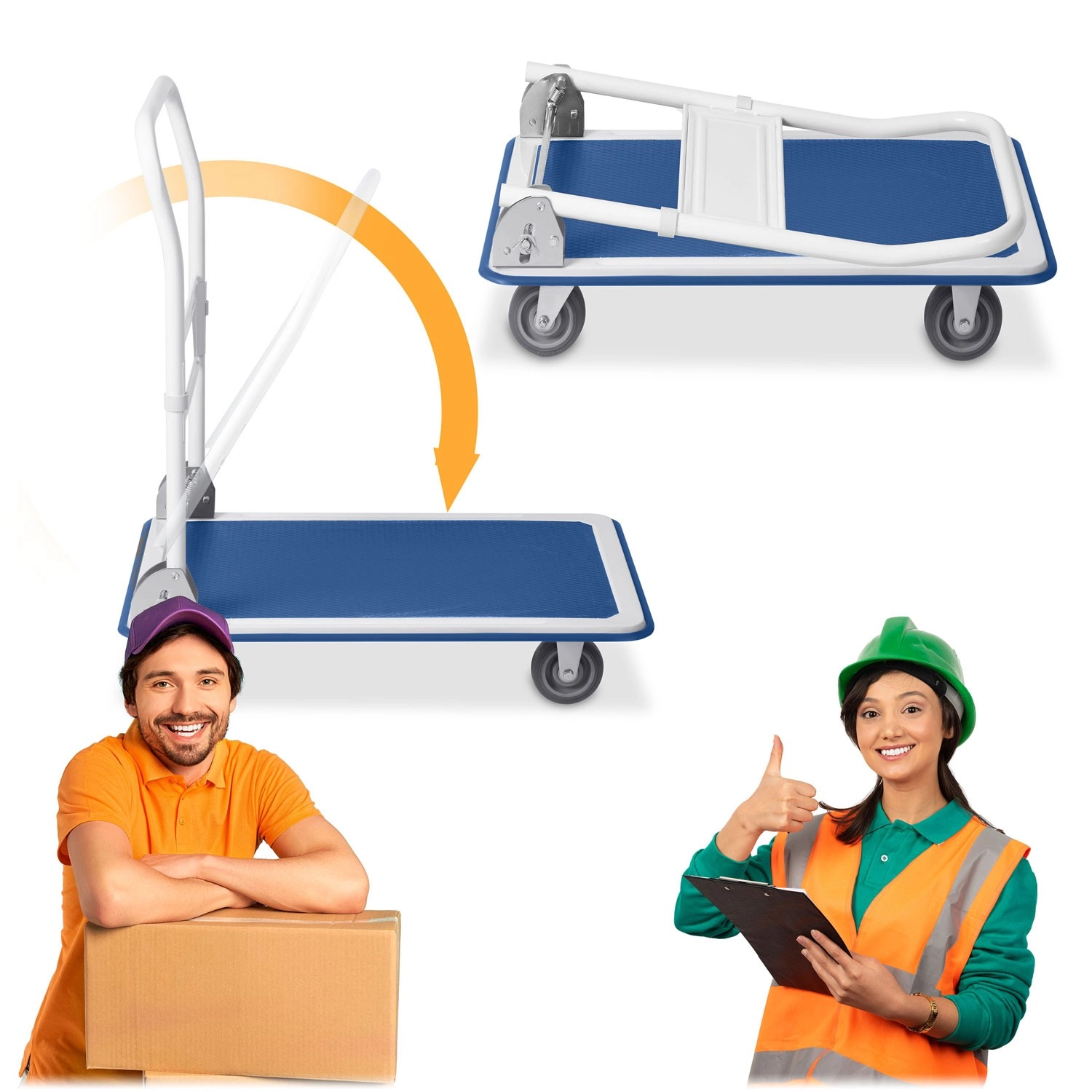 Chariot de transport pliable à plateforme 300 kg Humberg HM-506, blanc et bleu