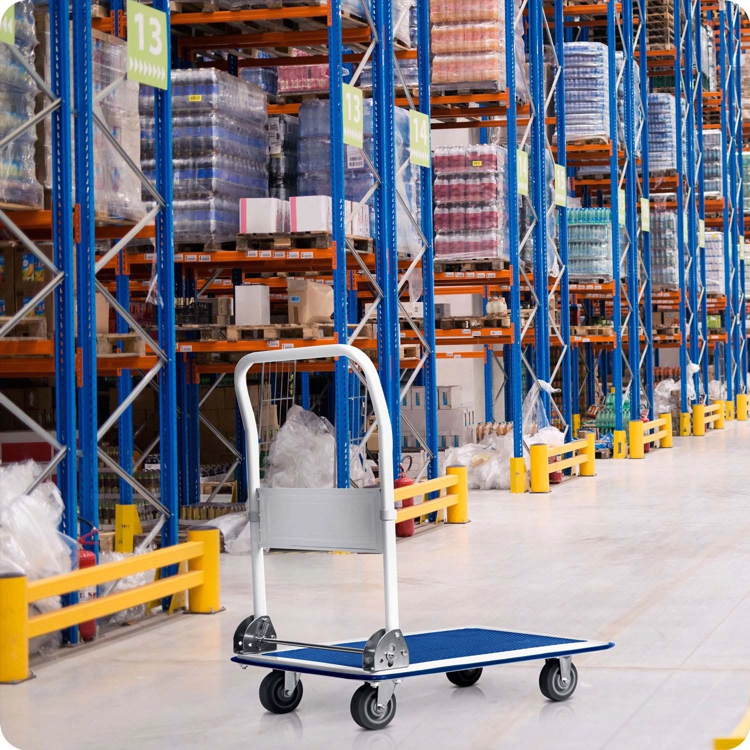 La structure en acier robuste et la répartition uniforme de la charge permettent de transporter en toute sécurité jusqu’à 300 kg. Idéal pour les entrepôts, les magasins et les déménagements.