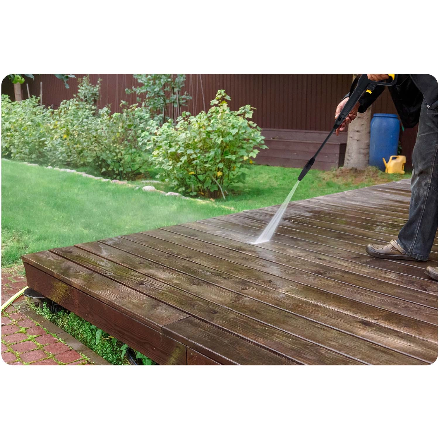 Le système StopAndSafe™ sûr et économe coupe automatiquement la pression après le relâchement de la gâchette, économise l’énergie et l’eau et protège le moteur ainsi que la pompe contre l’usure inutile. La conception pratique avec supports pour les accessoires, tuyau de 6 m et câble de 5 m assure une portée confortable et une manipulation aisée.