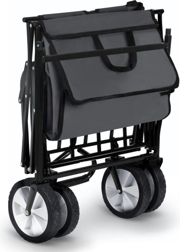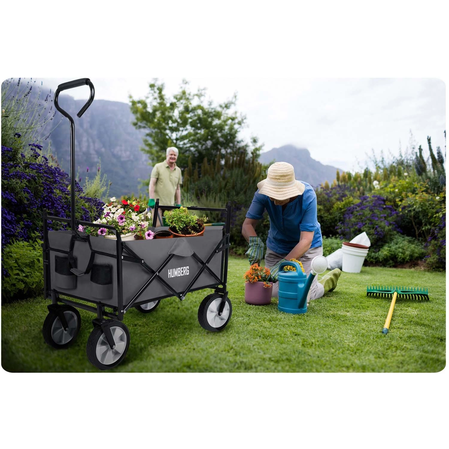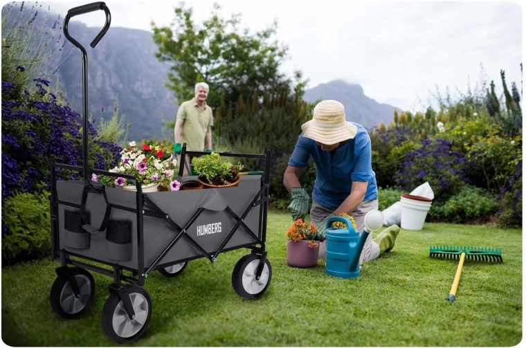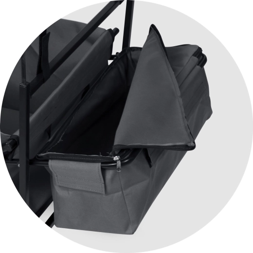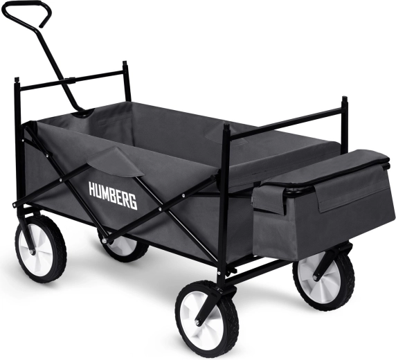 Pratique chariot pliable HUMBERG d’une capacité de 80 l et d’une charge maximale de 90 kg, il facilite le transport de charges au jardin, en excursion ou à la plage. Il dispose d’un auvent réglable contre le soleil et la pluie, d’un cadre en acier robuste avec revêtement par poudre, d’une poignée télescopique confortable avec revêtement antidérapant et d’une poche zippée amovible supplémentaire pour les petits objets. Les roues avant pivotantes assurent une manœuvrabilité aisée, la structure se plie rapidement en un format compact pour un transport et un rangement faciles.