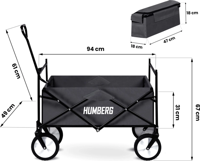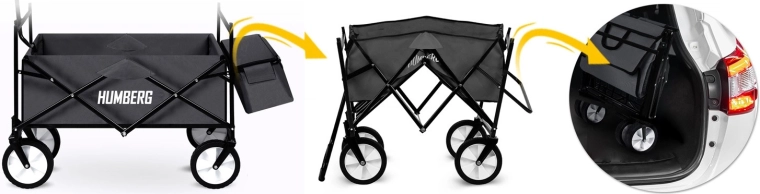 Chariot de transport pliable 80 l HUMBERG avec auvent réglable