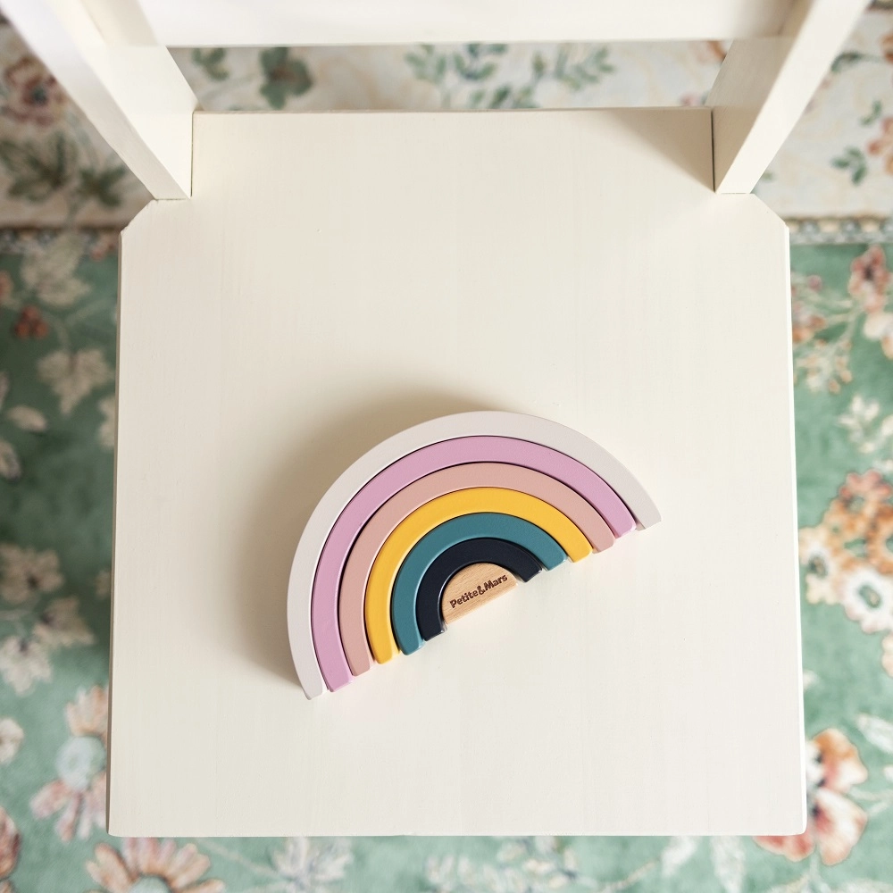 Arc-en-ciel en bois à empiler PETITE&MARS Wood of Mars Aurora Pink 24m+