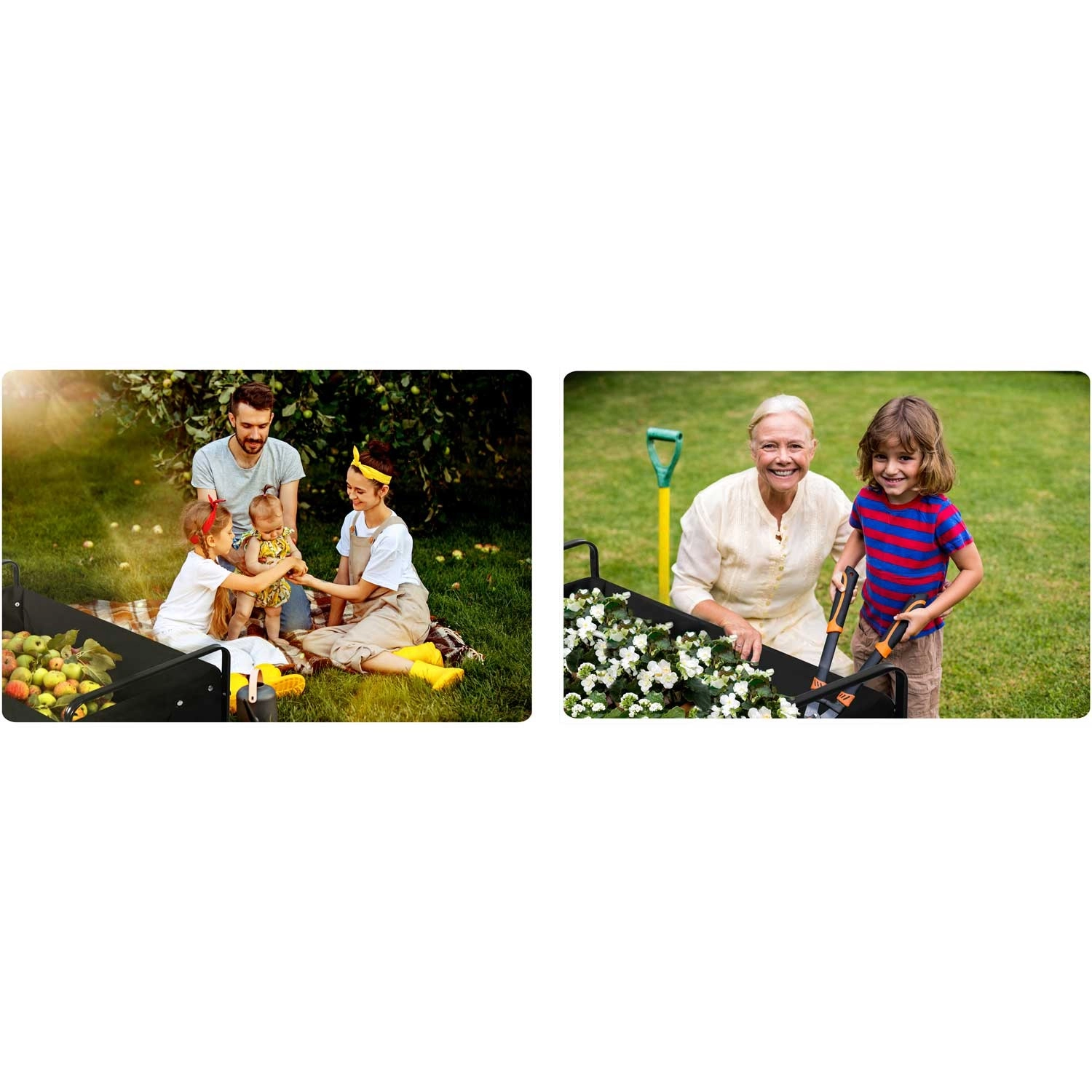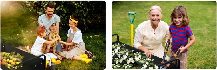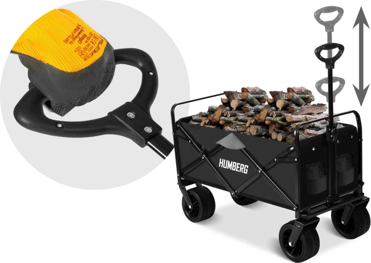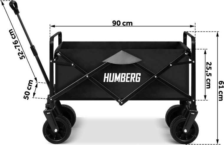 Le chariot pliable HUMBERG est un choix idéal pour un usage quotidien – travaux de jardin, courses ou escapades du week-end. Son cadre robuste en acier avec revêtement par poudre, sa benne textile profonde de 100 l et ses grandes roues tout-terrain garantissent un transport confortable et sûr de charges jusqu’à 120 kg.