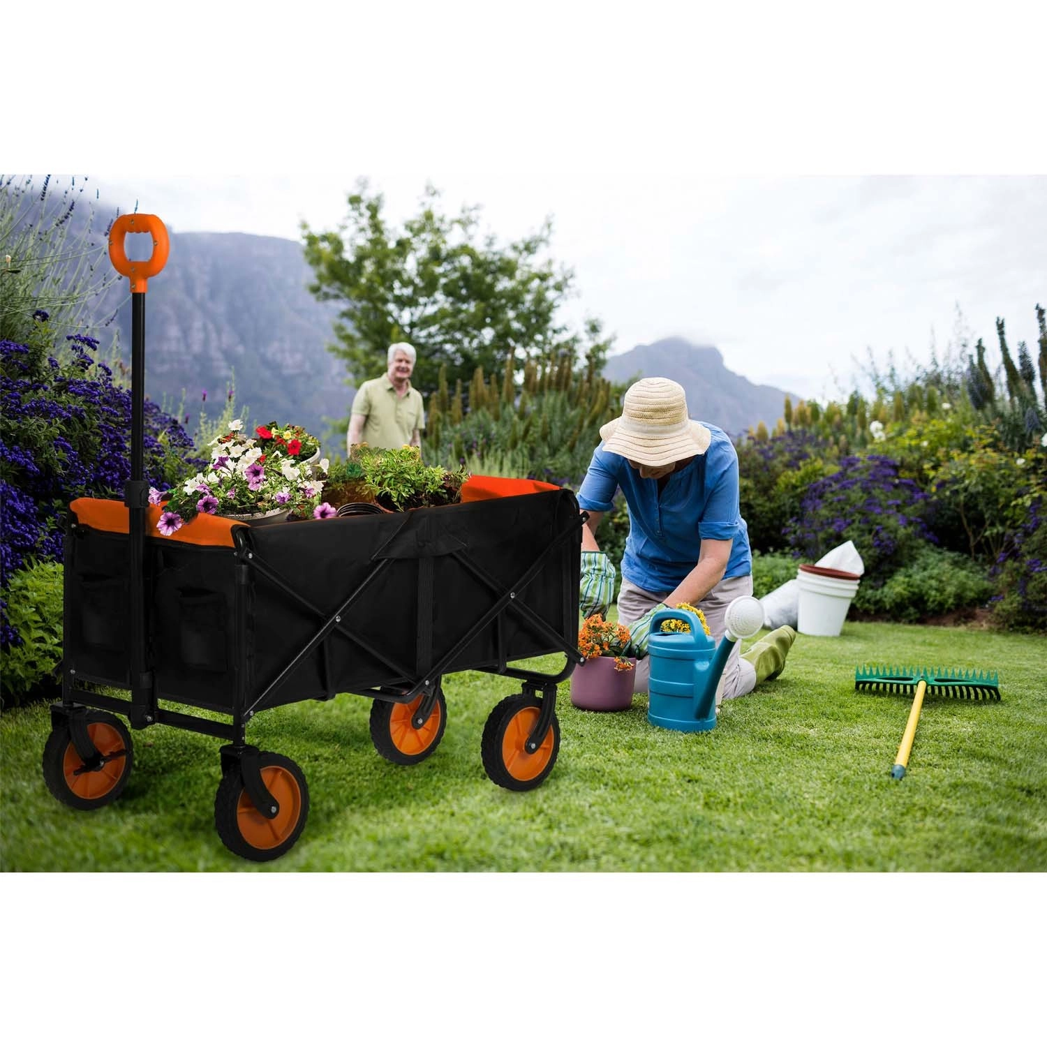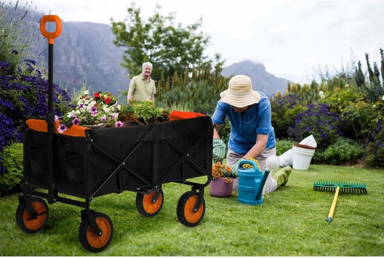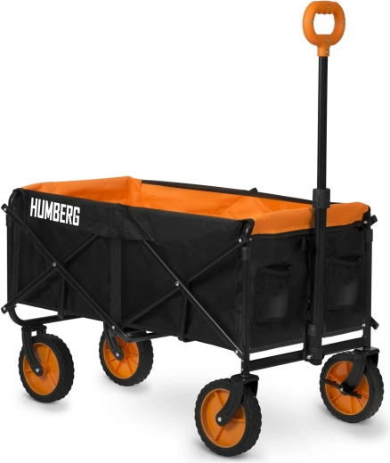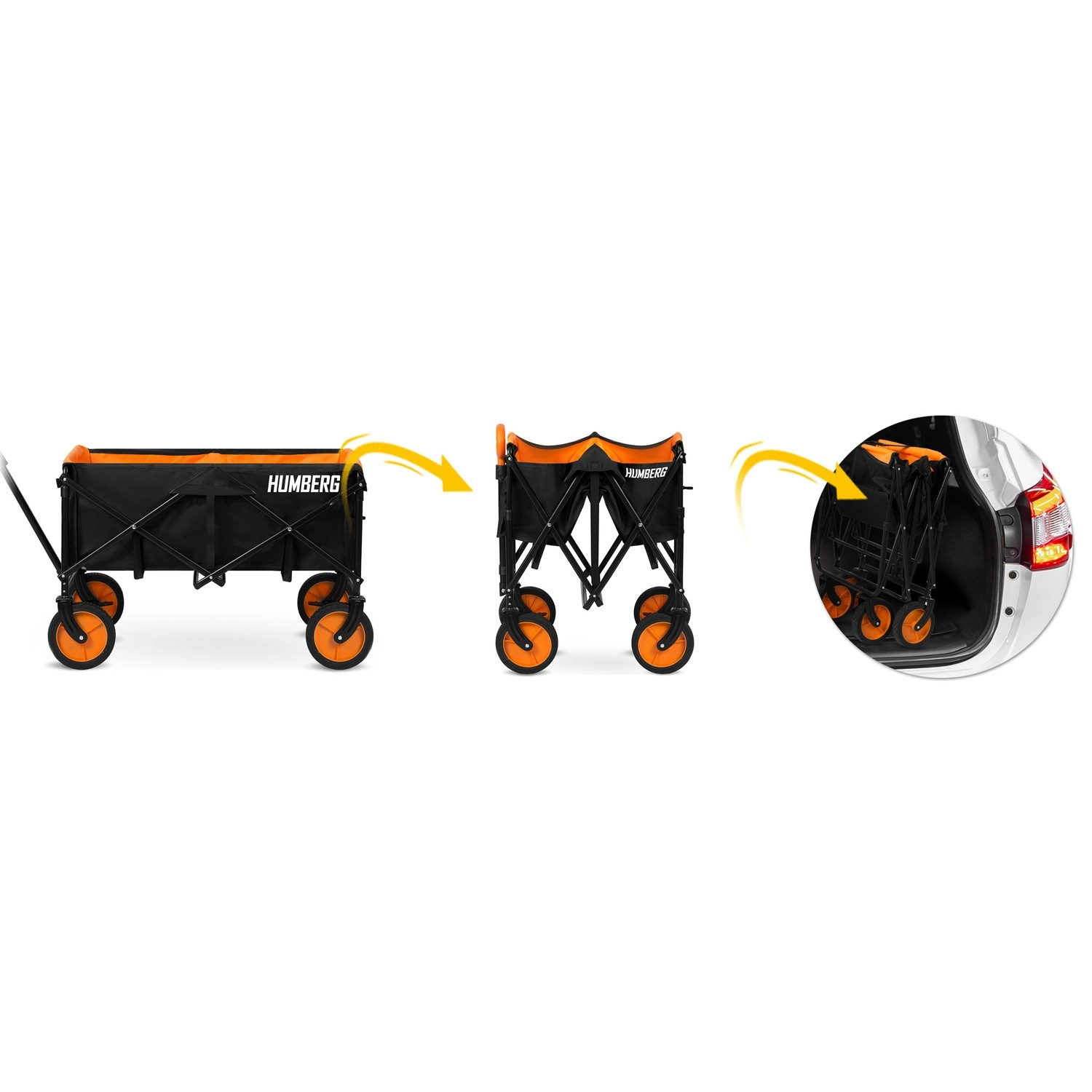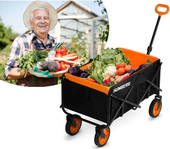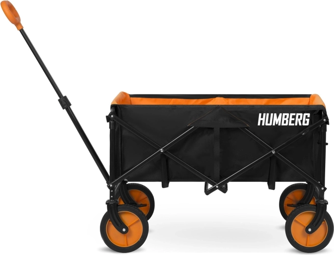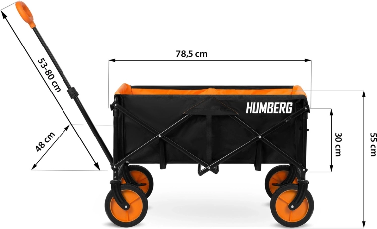 Pratique, le chariot pliable HUMBERG d’un volume de 100 l et d’une capacité de charge de 90 kg facilite le travail au jardin, les courses et les sorties. Grâce à sa structure en acier avec peinture thermolaquée, à son pliage rapide et à sa poignée télescopique ergonomique, il est facile à manier et transporte confortablement tout le nécessaire. Les roues avant pivotantes assurent une excellente maniabilité et le textile résistant se nettoie facilement. Deux porte-gobelets gardent les boissons à portée de main.