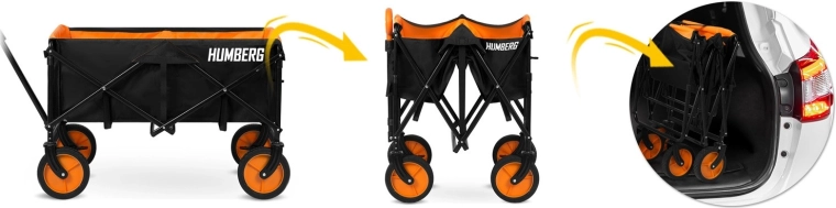 Le chariot se plie en quelques secondes en un paquet plat que vous rangez facilement dans le coffre de la voiture ou dans un placard. Idéal pour les voyages, pique-niques et le camping.