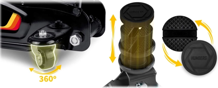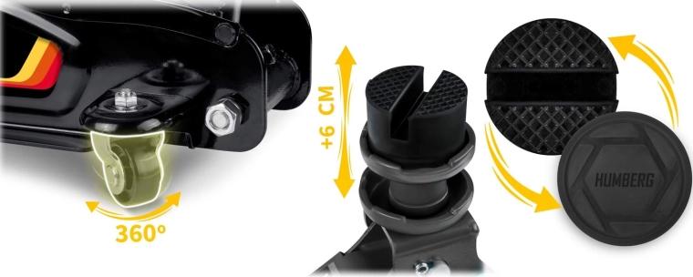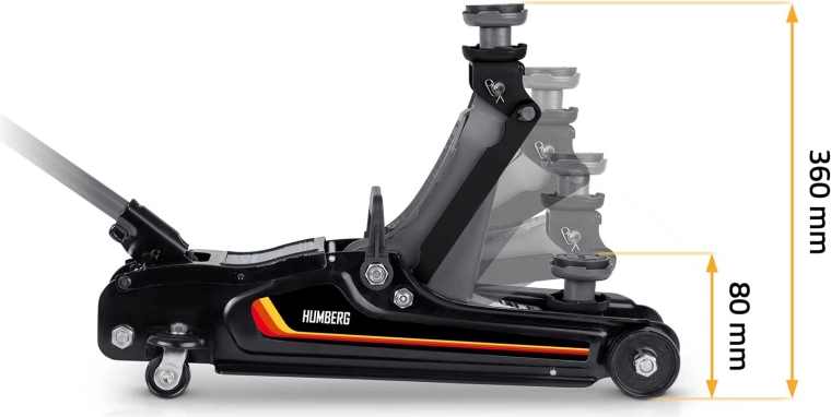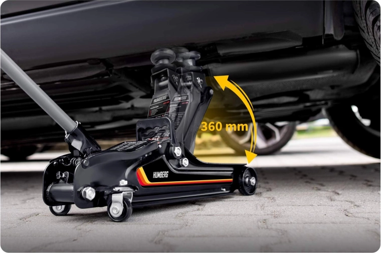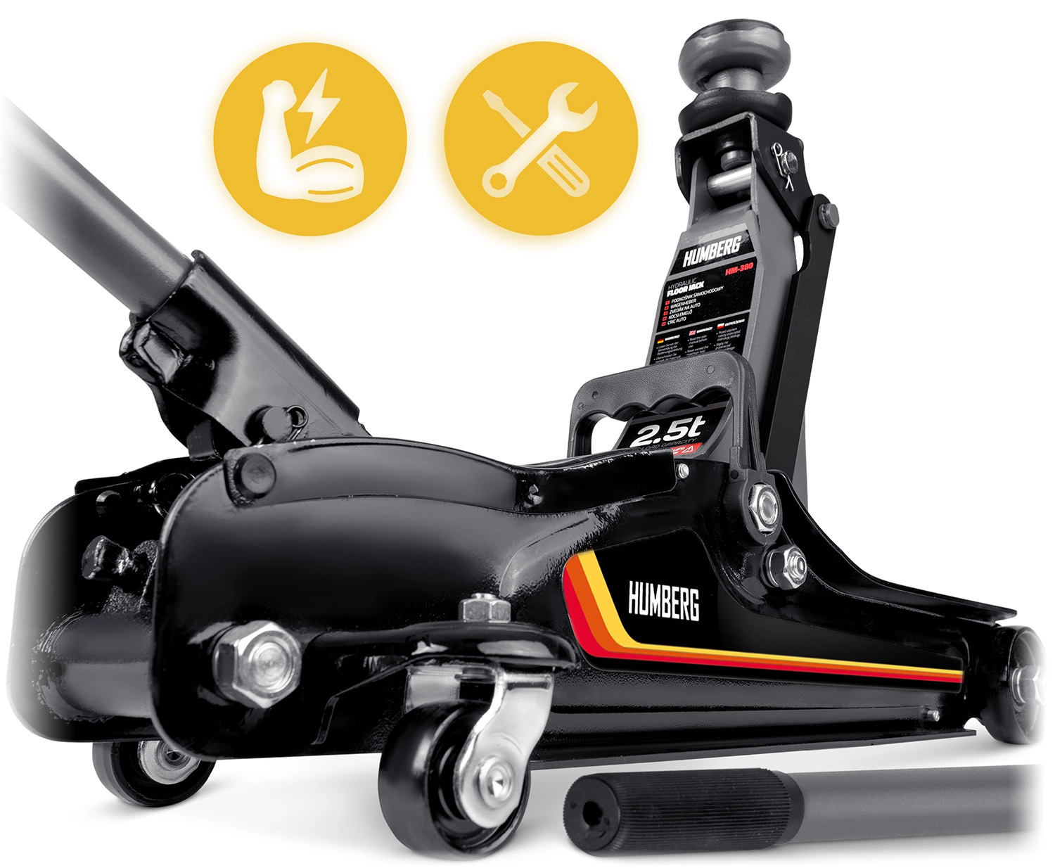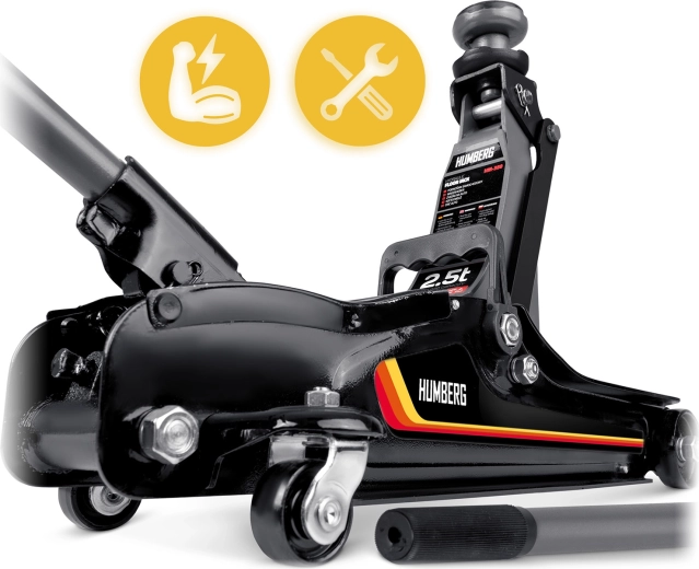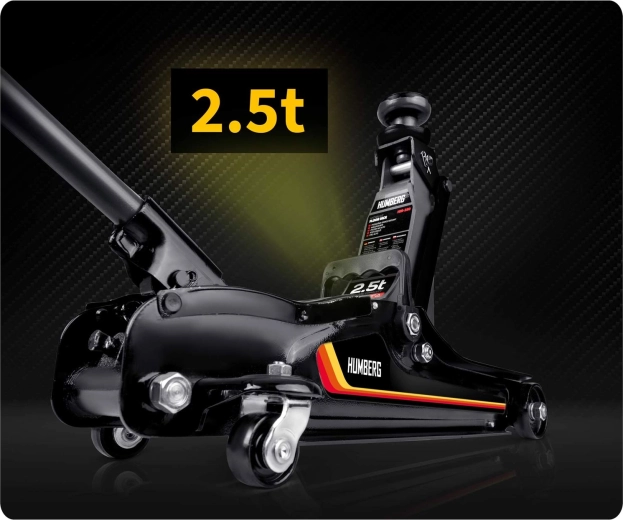 Le cric profil bas HUMBERG 2,5 t est un choix idéal pour lever rapidement et en toute sécurité voitures, multivans et petits utilitaires jusqu’à 2 500 kg. Le profil bas avec une course de 80–360 mm permet d’intervenir même sur des véhicules au châssis sportif. L’unité hydraulique à un seul piston assure un levage fluide et efficace, tandis que la valve de sécurité de surpression protège contre les surcharges.