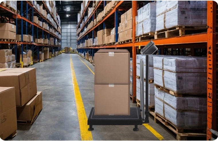 Des détails pratiques comme la poignée/barre d’appui pour charges hautes ou instables, le contour marqué pour une répartition homogène du poids et le mécanisme pliant rendent le travail plus efficace, réduisent le temps de manutention et minimisent les erreurs de pesée.