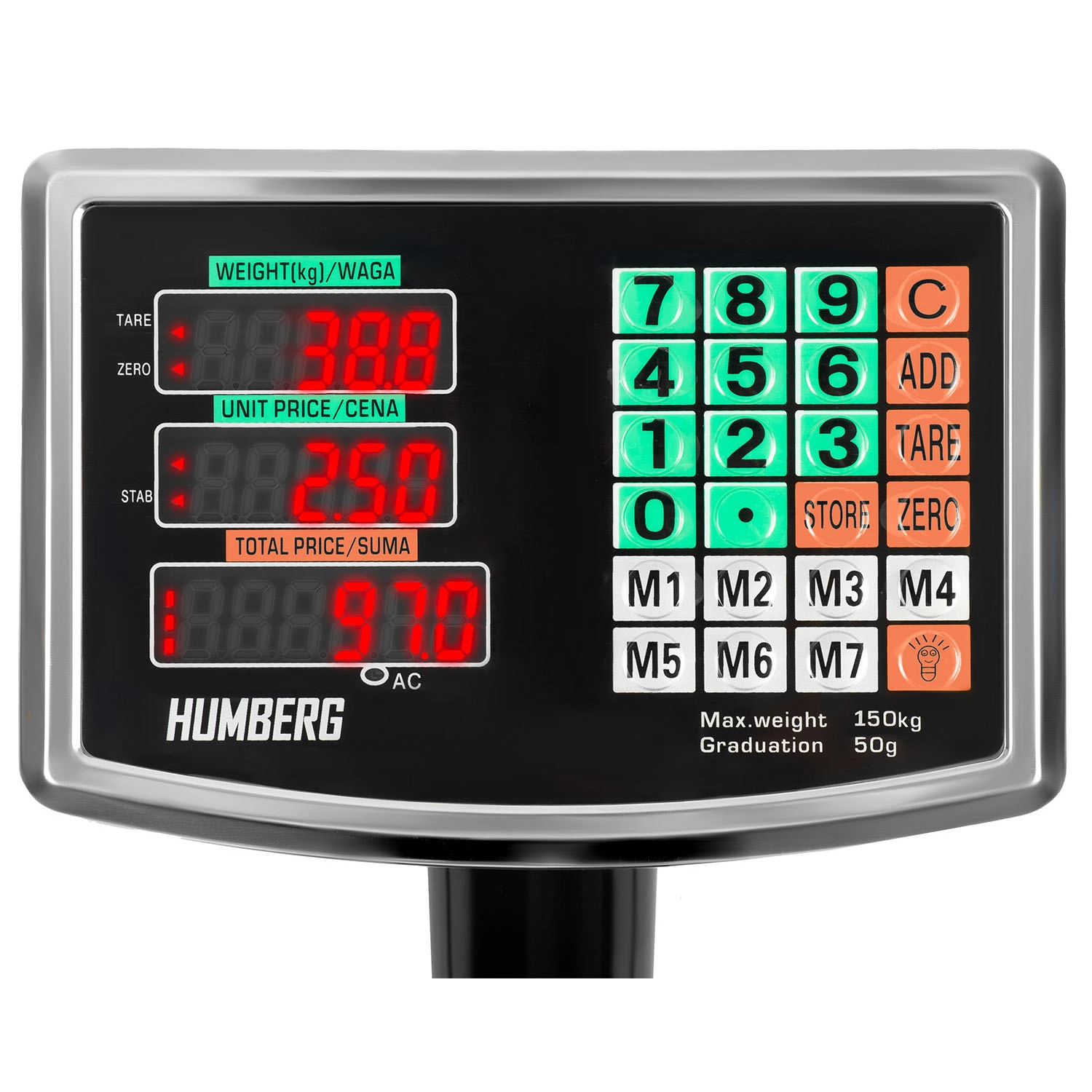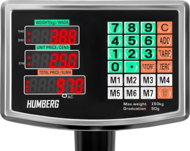 Cette balance à plateforme professionnelle HUMBREG MH-191 est conçue pour une pesée précise et rapide en environnement exigeant. Précision 0,05 kg, charge maximale 150 kg et LCD rétroéclairé à trois lignes pour des lectures claires facilitent le travail en entrepôt, en atelier et en expédition. L’avertissement de surcharge protège l’appareil et les marchandises pesées.