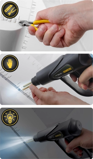 Le chauffage performant permet d’atteindre en seulement 3 secondes une température de travail jusqu’à 400 °C pour commencer immédiatement à réparer la plupart des plastiques courants.