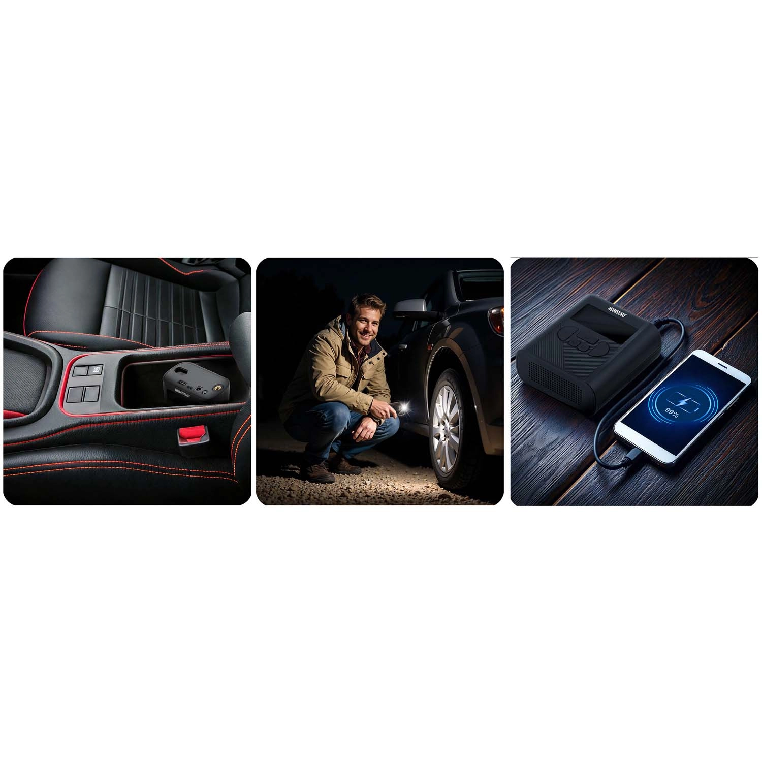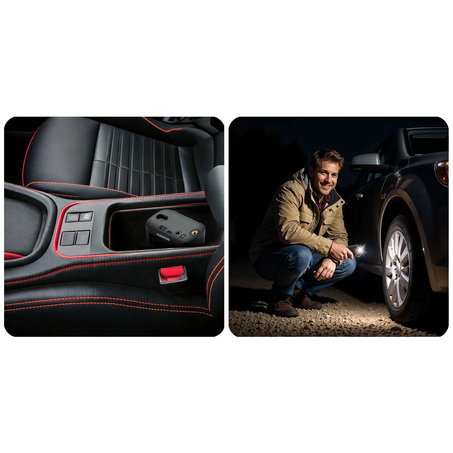 Le mini compresseur HUMBERG réunit haute performance et format de poche. Réglez facilement la pression souhaitée, choisissez un mode et le compresseur s’arrête automatiquement une fois la valeur atteinte. Son fonctionnement sans fil, sa construction robuste et son écran clair en font un compagnon fiable pour la voiture, le garage et les voyages.